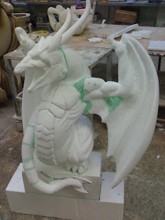 Algunos trabajillos en porex, unas esculturas para el showroom de una empresa en la que trabajé. En las siguientes entradas os mostrare el proceso de el dragón y el caballero un poco más a fondo. Todo tallado en porex y con recubrimiento de resina.